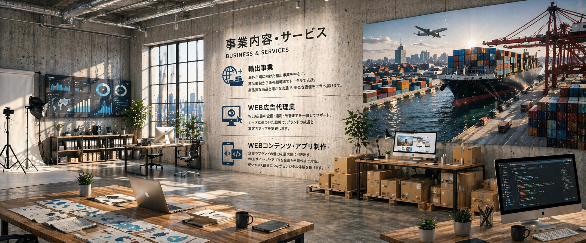 市場分析とクリエイティブ、技術力を掛け合わせ、Web広告・Webコンテンツ/アプリ制作・輸出事業を展開。